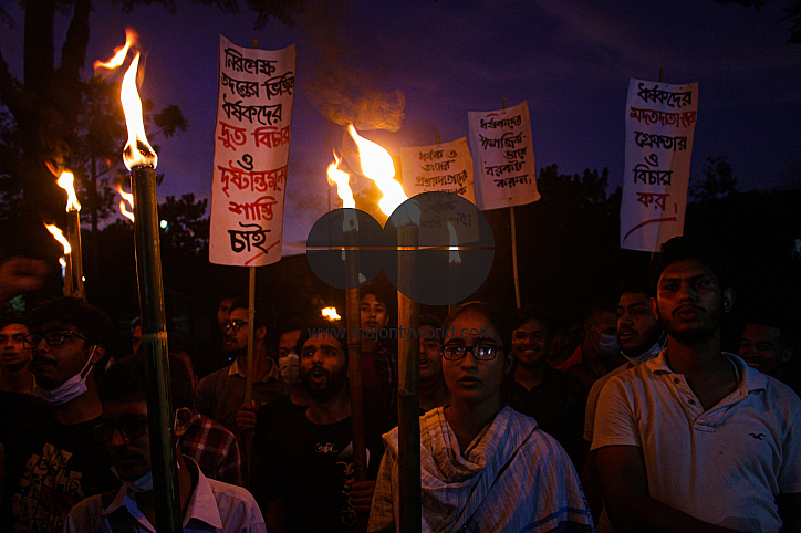 Students take part in a torch procession demanding women's safety, arrest and trial of rapist, lawlessness, injustice and atrocities in Bangladesh. The Bangladesh cabinet approved to increase the maximum punishment for rape to the death sentence on Octobe