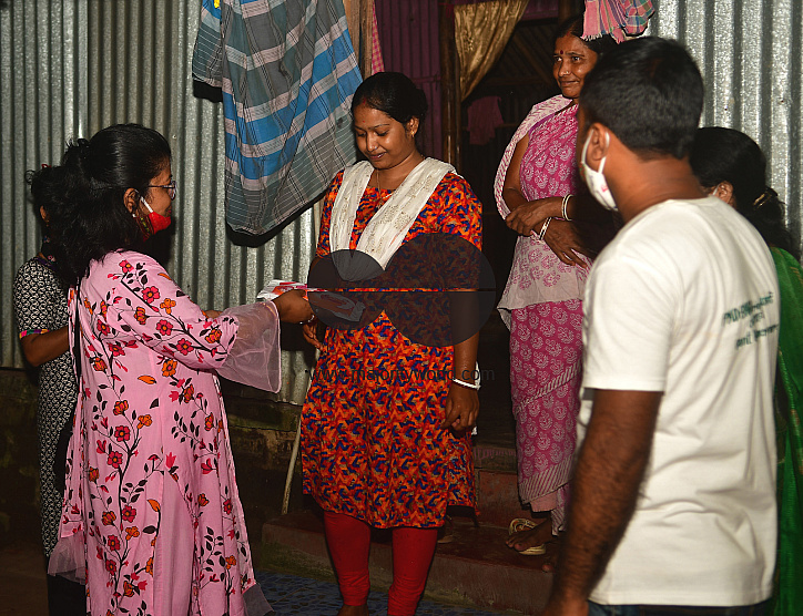 A group of social responsible people in Tripura distributed sanitary pads to slum dwellers on the occasion of national period day. The initiative and project was named “Pad Bank”. Agartala, Tripura, India.