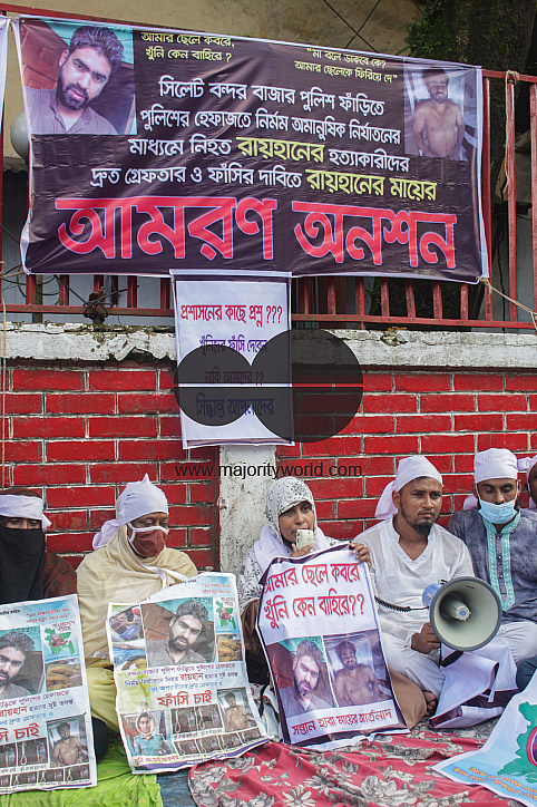 Raihan's mother goes on a hunger strike in front of the Sylhet Bandar Bazar police outpost demanding the immediate arrest and execution of the killers who killed her son Raihan while in police custody. Bangladesh.
