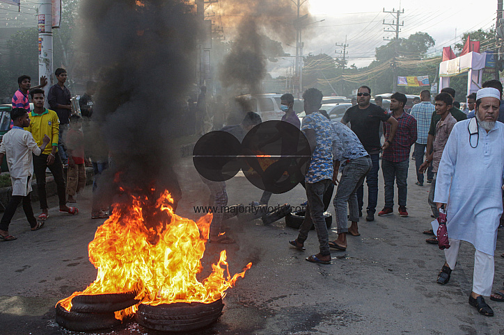 Protesters set fire to tires on Sylhet- Sunamganj road to protest the killing of Raihan, an innocent youth in police custody, and to demand exemplary punishment for the culprits. Bangladesh.