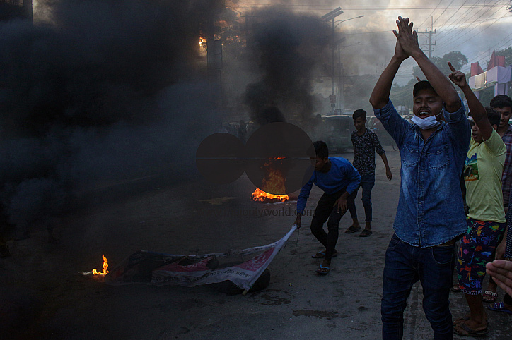 Protesters set fire to tires on Sylhet- Sunamganj road to protest the killing of Raihan, an innocent youth in police custody, and to demand exemplary punishment for the culprits. Bangladesh.
