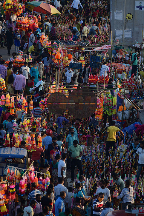 • Image Description: People are buying the idol of Goddess Lakshmi on the eve of the Lakshmi Puja at Agartala. Hindu devotees, especially women at home fast in worship of the goddess in order to seek blessings for wealth and prosperity in the family. Agartala, Tripura, India