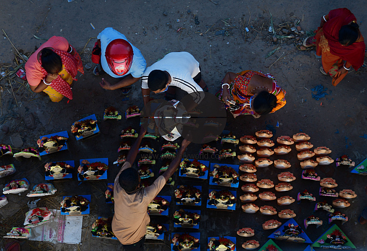 People are buying the idol of Goddess Lakshmi on the eve of the Lakshmi Puja at Agartala. Hindu devotees, especially women at home fast in worship of the goddess in order to seek blessings for wealth and prosperity in the family. Agartala, Tripura, India