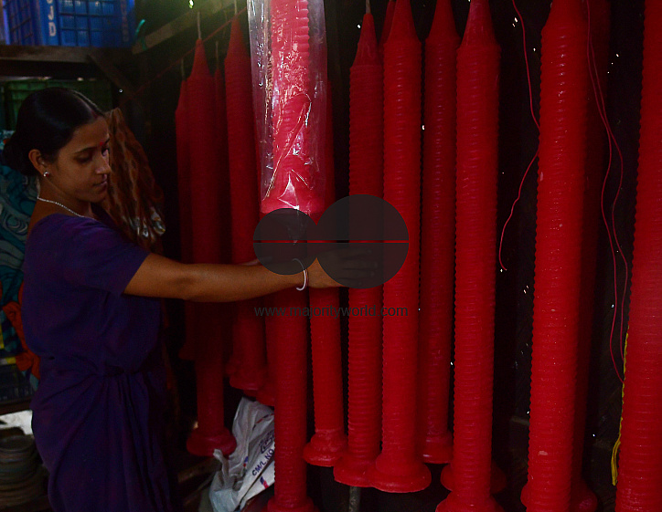 • Image Description: Workers are busy making candles ahead of Diwali festival. People buy candles to decorate their homes during Diwali, the annual Hindu festival of lights. Agartala, Tripura, India.