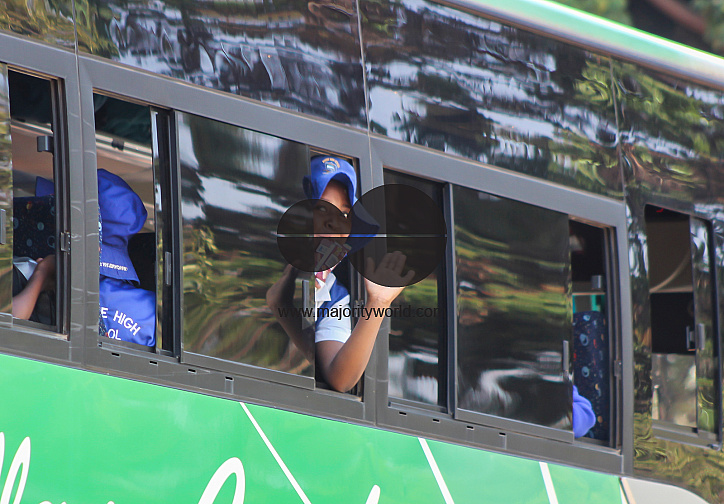 A school child waves goodbye to her parents as she leaves for the boarding school. Children returned to school after month at home due to covid 19. Harare, Zimbabwe.