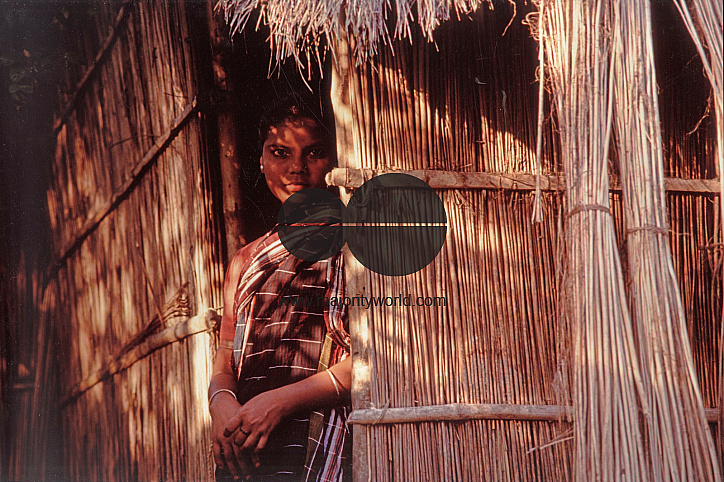 A woman from a nearby household peered curiously at this photographer walking through the village at daybreak. In the early nineties I had been commissioned by the Swedish Developmental Agency to tell the story of a remarkable non profit organization in Faridpur called Saptagram (lit. seven villages) Nari Swanirvar Parishad (SNSP). It was a womenâs self reliance movement established in 1976 by late Professor Rokeya Rahman Kabeer an Educationalist. It was wonderful to be in the company of this self assured group of very competent women. Bangladesh.