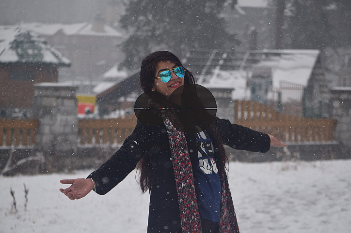 Kashmir, 15th November 2020. A woman enjoying the snowfall. A fresh spell of snowfall was observed in the higher reaches of Jammu and Kashmir on Saturday. Snowfall was reported from the ski-resort of Gulmarg, the popular tourist resort.