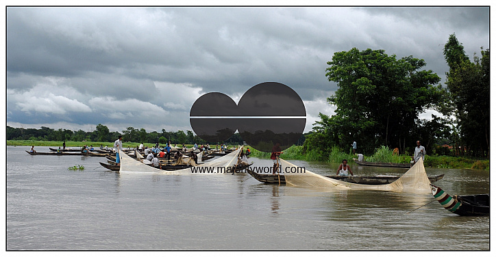 Fishermen collecting eggs of salt water fishes from Haldaa River, Hathazari, Chittagong. Haldaa is well known in the fishing community as fishes of both salt and sweet water come here to release eggs. Bangladesh. May 14, 2007
