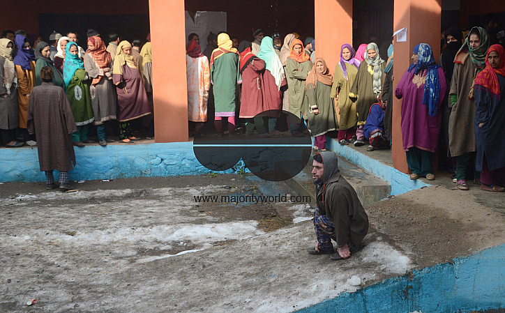Jammu and Kashmir, 28th November 2020. A handicapped man casts his vote at Raiyar Khan Sahib in Budgam district. Voting for the first phase of District Development Council (DDC) elections in Jammu and Kashmir begun amid tight security. In the first phase