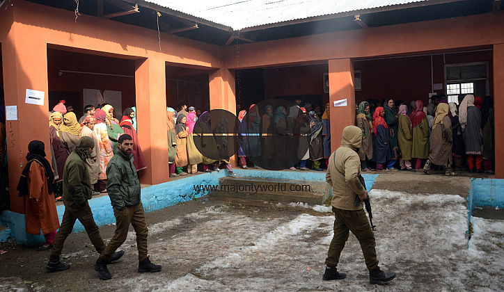 • Image Description: Jammu and Kashmir, 28th November 2020. People stand in a long queue to cast their vote at Raiyar Khan Sahib in Budgam district. Voting for the first phase of District Development Council (DDC) elections in Jammu and Kashmir begun amid tight security. In t