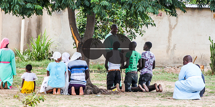 A prophet attends to members of his congregation at an open space apostolic sects in Hopley Harare. Most Zimbabweans now prefer Apostolic sects for salvation instead of the catholic churches. Harare, Zimbabwe.