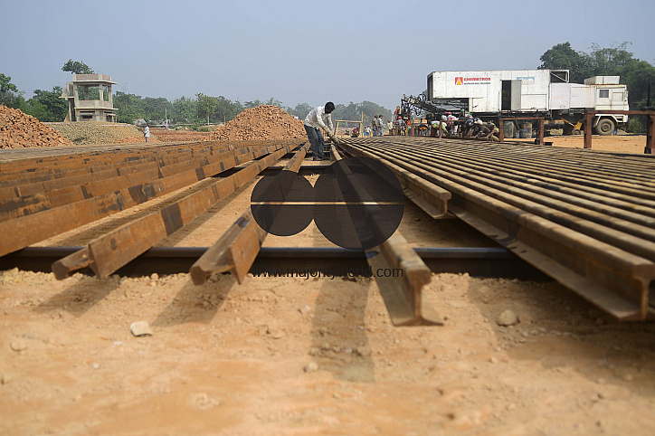 • Description: Laying of tracks and other related construction work in full swing at Nischintapur, located in the peripheries of Agartala city. Another big railway project connecting India and Bangladesh through Tripura stands at the threshold of completion. Agartala, Tripura, India.
