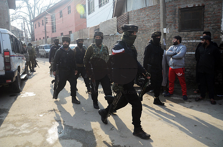 • Image Description: Srinagar, 14th December 2020. Police and SOG cordoned off the area after militants attacked the PDP leader Parvaiz Ahmad, at his residence in Natipora.