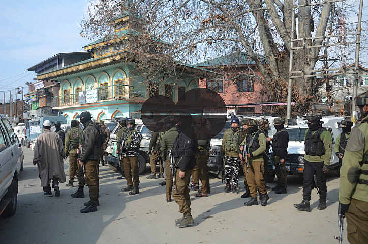 • Image Description: Srinagar, 14th December 2020. Police and SOG cordoned off the area after militants attacked the PDP leader Parvaiz Ahmad, at his residence in Natipora.