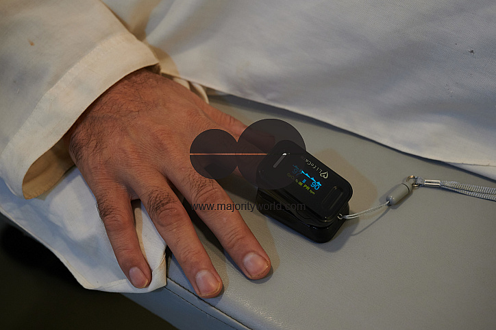 Amidst the coronavirus pandemic that continues to rise in the country rapidly, a health worker dressed in full PPE gears uses pulse oximeter to measure oxygen saturation level from a man, while he receives oxygen at a community health centre in Shiri Jinnah neighbourhood in Karachi, the main port city of Pakistan.