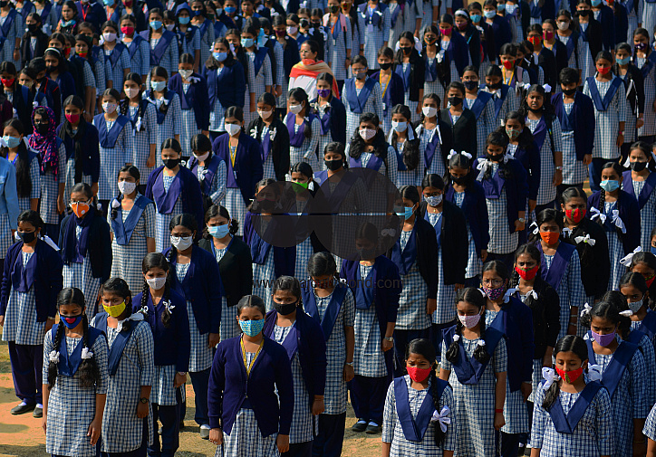 • Image Description: Students wearing masks have attended the first day of school. The Tripura government has allowed schools from class five to class nine to start functioning with strict adherence to the norms issued by the Ministry of Health and family welfare in view of t