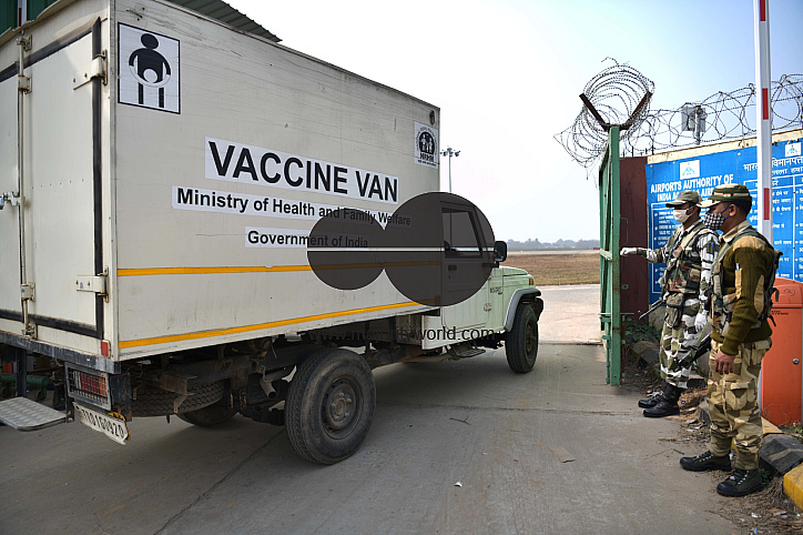 Health workers are unloading vaccinations from a ministry of health vehicle at the state vaccine store located at the directorate of health and family welfare at Gurkha Basti. A Total of 56,500 vaccines reached Tripura in the first phrase of the vaccinati