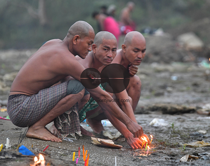 • Image Description: Tribal people are praying after taking a dip in water in Howrah on the occasion of "Makar Sankranti" festival at Chakmaghat village. Agartala, Tripura, India.