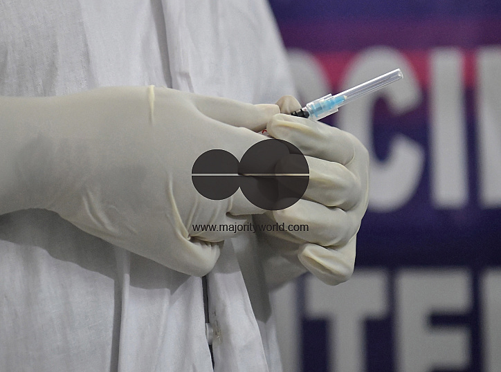 Sharmishta Banik, a 25 years old medical administrator in the vaccination room with the Covishield Vaccines in Bishalgarh Sub-Divisional Hospital. Agartala, Tripura, India.
