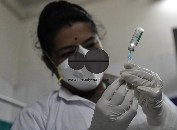 Sharmishta Banik, a 25 years old medical administrator in the vaccination room with the Covishield Vaccines in Bishalgarh Sub-Divisional Hospital. Agartala, Tripura, India.
