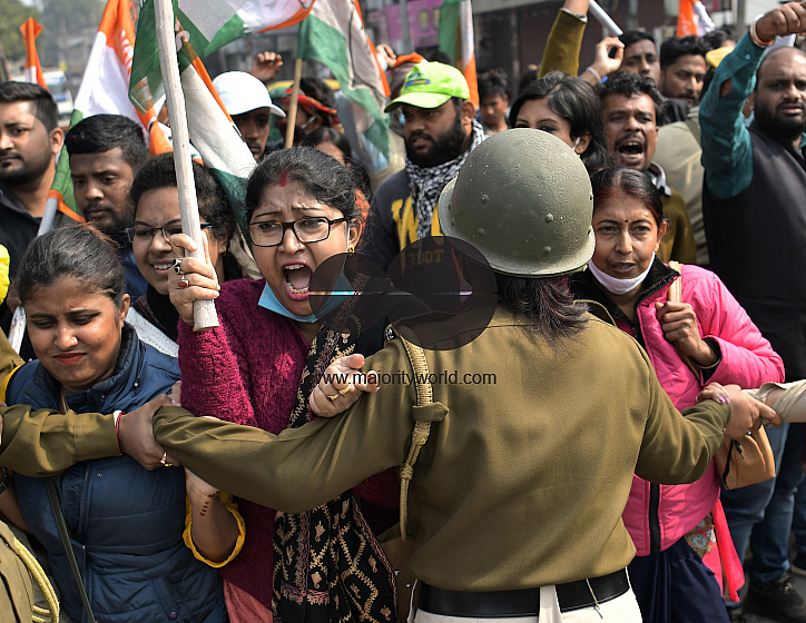 • Description: Congress supporters in front of the state Congress Head Office during a protest against the attack on the PCC president. Agartala, Tripura, India.