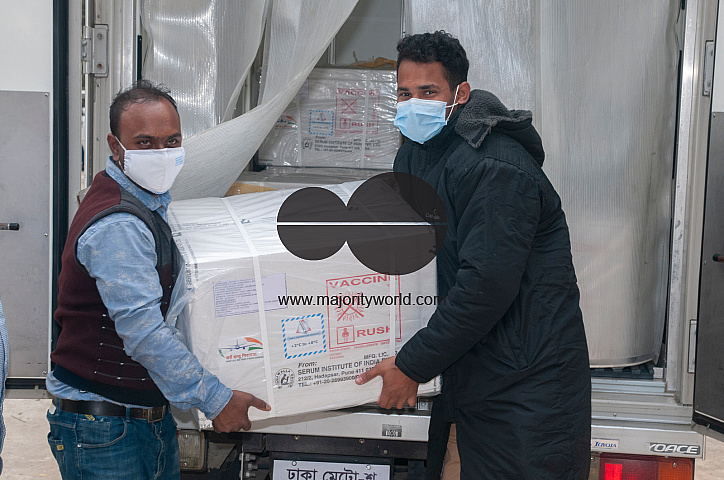 • Description: The widely circulated vaccine for the Oxford-AstraZeneca vaccine by the Serum Institute of India has reached Sylhet. The vaccine was brought to the Sylhet Civil Surgeon's office in a van containing coolers of Beximco Pharmaceuticals. Vaccinations are expected to start from February 8th, 2021.Sylhet, Bangladesh.