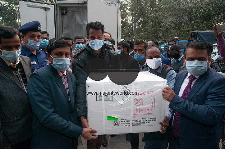 • Description: The widely circulated vaccine for the Oxford-AstraZeneca vaccine by the Serum Institute of India has reached Sylhet. The vaccine was brought to the Sylhet Civil Surgeon's office in a van containing coolers of Beximco Pharmaceuticals. Vaccinations are expected to start from February 8th, 2021.Sylhet, Bangladesh.