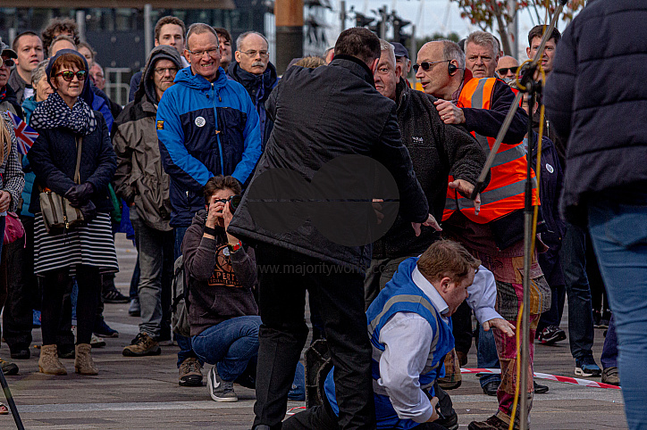 Some people supporting Brexit interrupting aggressively the People's Vote rally on Keele Square. Documentary photographer, Jenny Goodfellow, seen documenting the skirmish in the thick of it. 6th October 2018, Sunderland, England.