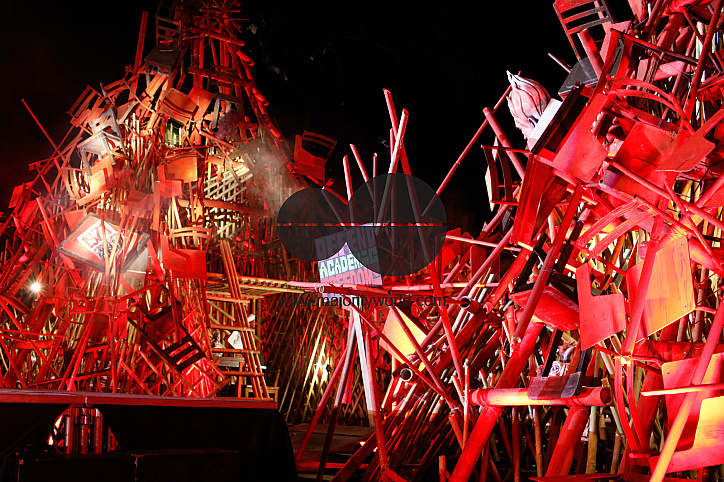 • Image Description: Students and teachers call to defend academic freedom in front of an art installation called "barikada" mounted by popular visual artist Toym Imao inside the University of the Philippines. This is part of a 9 days demonstration (Feb 1-9) to show that the