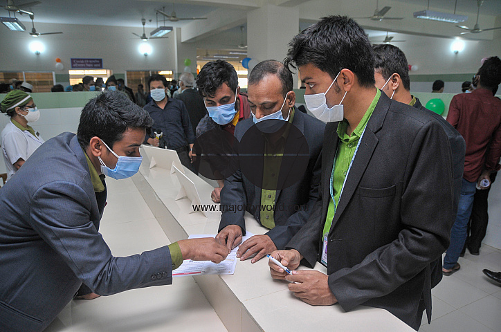 Sylhet, Bangladesh. 07th February 2021. The Coronavirus vaccinations on people began in Sylhet today. Medical personnel sort out registration forms of Coronavirus infected people ahead of the vaccinations at Osmani Medical College and Hospital.