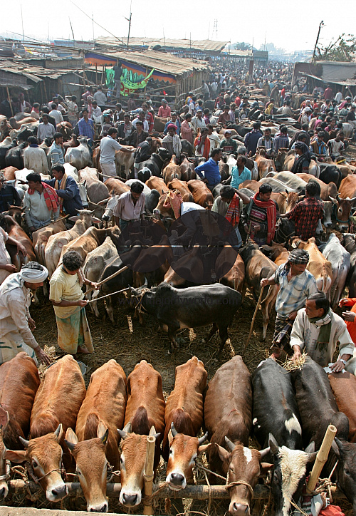 Gabtali Cattle Market, one of the largest cattle markets of the city ahead of the second biggest Muslim festival Eid-ul-Azha known as the Eid of Sacrifice. This two days long festival falls 69 days after Eid-ul-Fitr. Dhaka, Bangladesh. December 20, 2007.