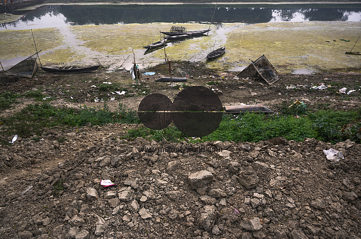 Jalangi River is currently in danger. Once Jalangi was a full-flowing river but now the river is full of sediments and has lost its depth. The river is breaking its side portions every day. The intense pressure of growing populations, industrialization, unrestricted excavation and unplanned development is seriously showing in terms of both quality and quantity of water the rivers provide. Tehatta, West Bengal, India.