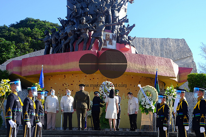 Government and military officials offer flowers in front of the People Power Monument as part of commemorating the 35th anniversary of EDSA Revolution in front of the People Power Monument. This year's theme is "EDSA 2021: Kapayapaan, Paghilom, Pagbangon
