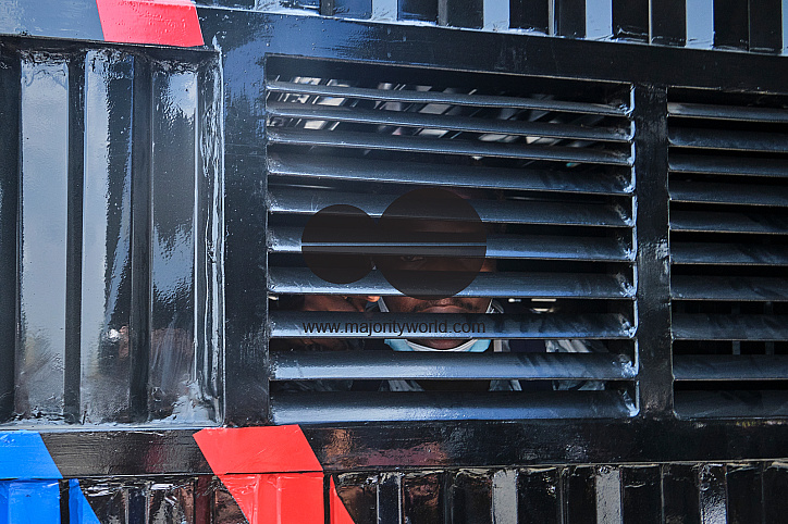 A protestor looks out of a police van during a demonstration against the re-opening of the Lekki toll plaza in Lagos. Activists had called for a renewed protest following a judicial panel authorization of the reopening the city's toll gate, the flash point of the #EndSARS protests against police brutality, where the military shot at peaceful protesters on 20th October 2020. The protestors were met with heavy-handed crackdown by security forces who are trying to prevent a repeat of the protests that went on for weeks in major cities in Nigeria last year. Lagos, Nigeria.