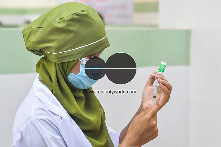 • Image Description: Health workers vaccinating people during the first-stage of the coronavirus vaccination program at Osmani Medical College and Hospital. Sylhet, Bangladesh.