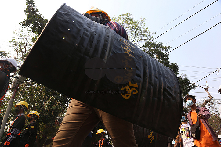 • Description: The funeral of a 26 year old man who was shot and killed by the Myanmar Security Forces on March 5, 2021 while he was going outside to eat lunch during work was held today (6th March 2021). He is a father of a 5 year old child and a 5 months pregnant wife. People took to the streets to protest the military coup during the funeral proceedings. Mandalay, Myanmar.