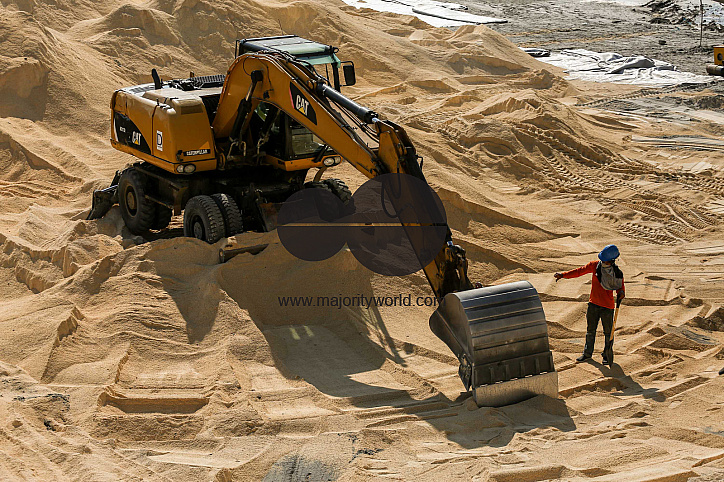Workers spread synthetic white sand along a portion of the Manila Bay walk near a US Embassy as part of the government’s rehabilitation program for the coastal bay. Philippines.