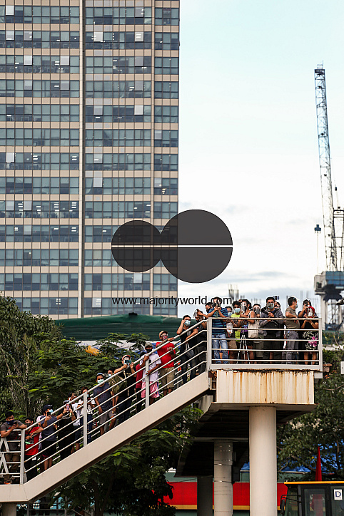 • Image Description: People take pictures on a footbridge as they flock to a portion of Manila baywalk area that was covered with crushed dolomite rocks amid rising coronavirus cases in Manila, Philippines.