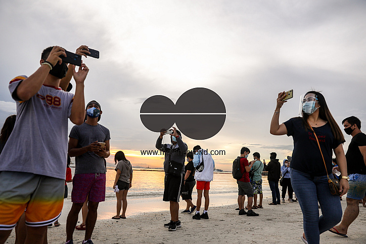 • Image Description: People take pictures on a footbridge as they flock to a portion of Manila baywalk area that was covered with crushed dolomite rocks amid rising coronavirus cases in Manila, Philippines.