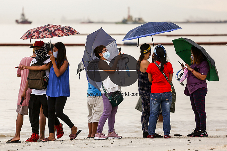 • Image Description: People take pictures as they flock to a portion of Manila baywalk area that was covered with crushed dolomite rocks amid rising coronavirus cases in Manila, Philippines.