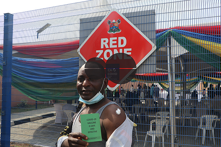 A man stand after receiving a dose of the Oxford/AstraZeneca coronavirus disease (COVID-19) vaccine at the CACOVID ISOLATION CENTRE, MAINLAND, INFECTIOUS DISEASE HOSPITAL, YABA, in Lagos, Nigeria.