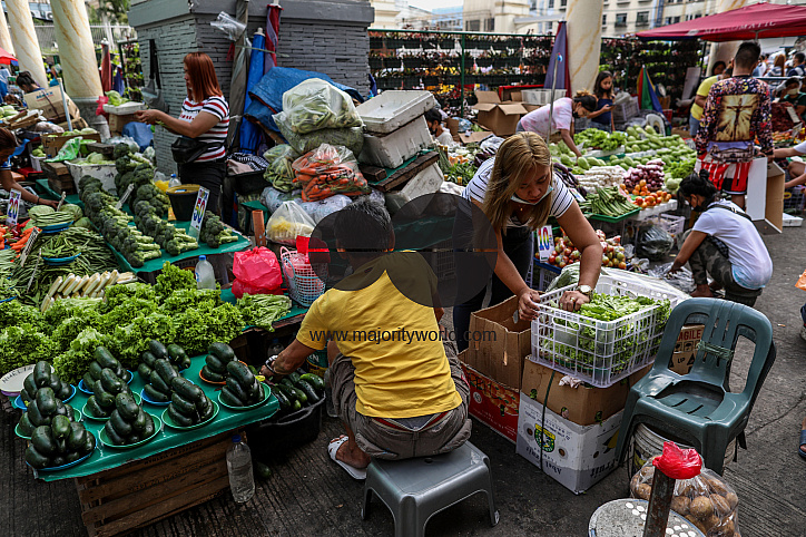 Vendors sell vegetables in a plaza as Metro Manila nears one year under a community quarantine to help fight the spread of the coronavirus. Philippines.