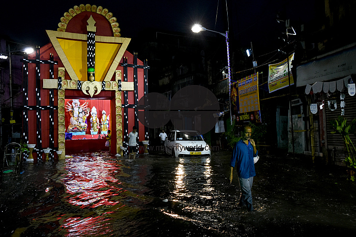 Durga festival amidts flash flood in Kolkata.