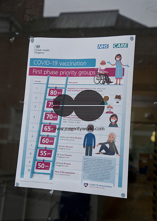 A sign outside a health clinic with information about the Pfizer Covid vaccine at a facility by the Royal Free Hospital in London, England.
