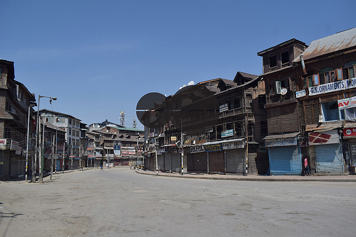 • Image Description: Deserted view of lal chowk during first day of lockdown in Srinagar. Strict restrictions were imposed on the movement of people as part of the administration’s 84-hour lockdown to contain the spread of coronavirus, amid a surge in virus related infections