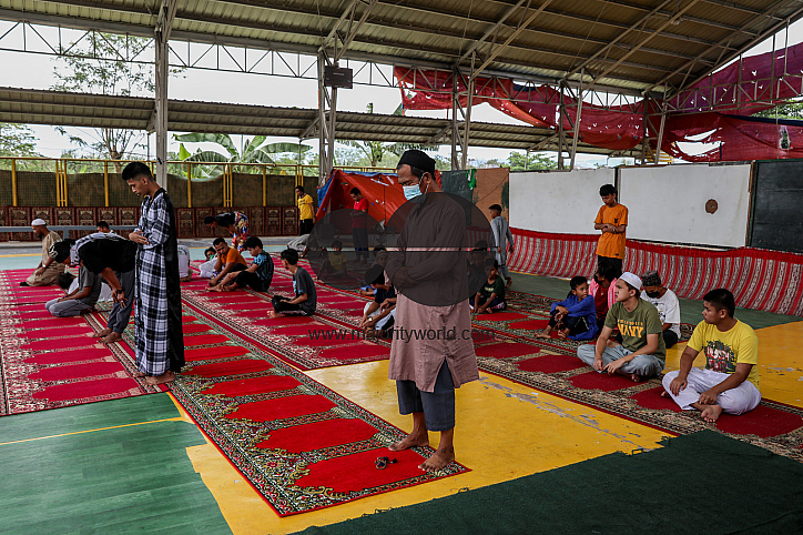 • Image Description: Filipino Muslims wearing protective masks as a precaution against the coronavirus outbreak gather as they attend a midday prayer in observance of Ramadan inside a Muslim community in Marikina city, Philippines.