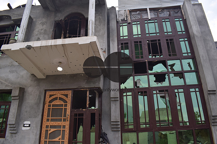 A house was damaged after a encounter between forces and militants. Two unidentified militants were on Monday killed in an ongoing anti-militancy operation of the security forces on the outskirts of Srinagar. A police spokesman said the militants were killed in Khanmoh area, where an encounter started during a cordon and search operation. Khonmoh in Srinagar.