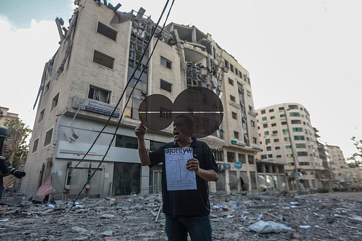 • Image Description: Palestinians inspect the damage to the Palestinian Ministry of Health building and Al-Rimal dispensary, as a result of an Israeli airstrike on a target next to the ministry. Gaza City.