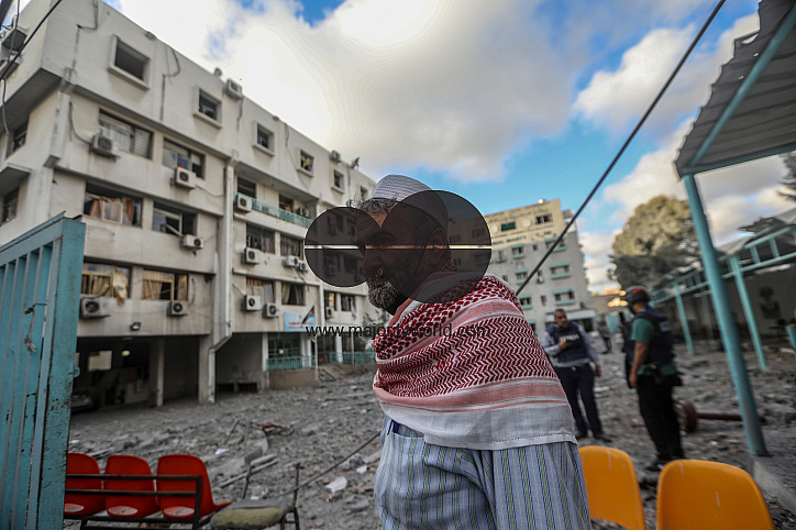 • Image Description: A man looks on sadly at the the damage to the Palestinian Ministry of Health building and Al-Rimal dispensary, as a result of an Israeli airstrike on a target next to the ministry. Gaza City.