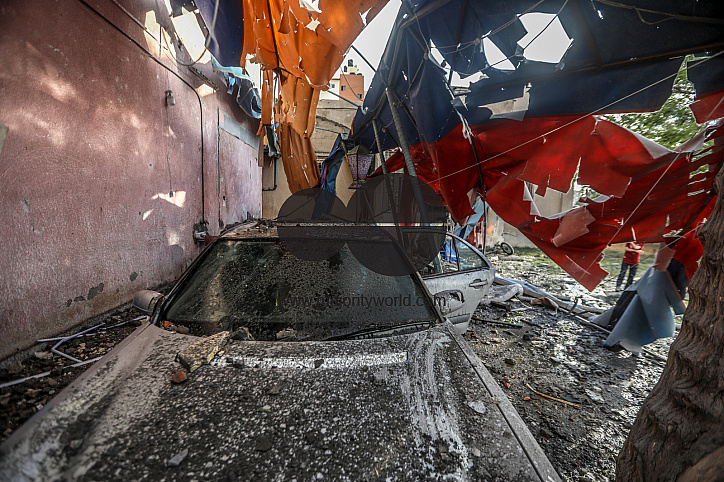 Damaged vehicles at the Palestinian Ministry of Health building and Al-Rimal dispensary, as a result of an Israeli airstrike on a target next to the ministry. Gaza City.